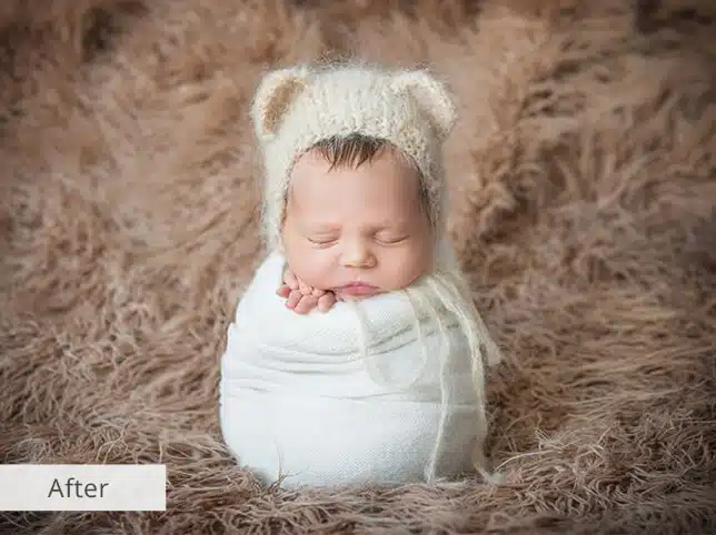 If your newborn photo’s background is too dark or lacks depth, ccplbd can help. We enhance colors, remove harsh shadows, and adjust the background’s sharpness or blur level. Our expert retouchers can also replace the original background with a more fitting one, ensuring a natural and polished look for your baby’s precious moments.