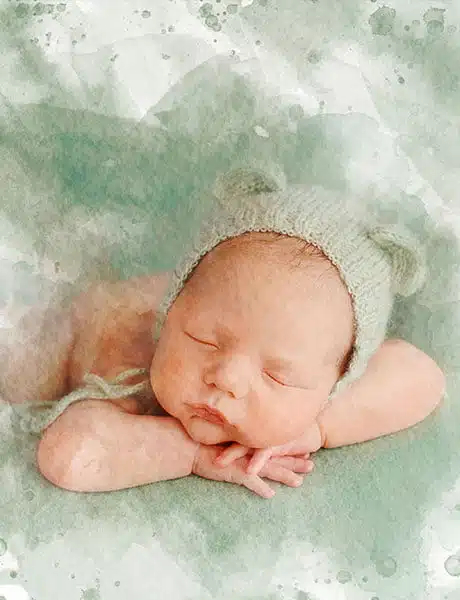 After deleting the original background, we replace it with a new one to enhance the mood of your image. This ensures that every photo becomes a unique piece of art, capturing the essence and charm of your baby’s portrait.