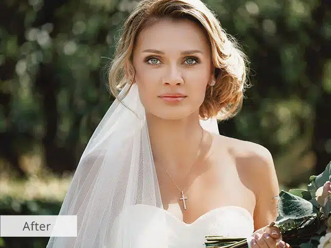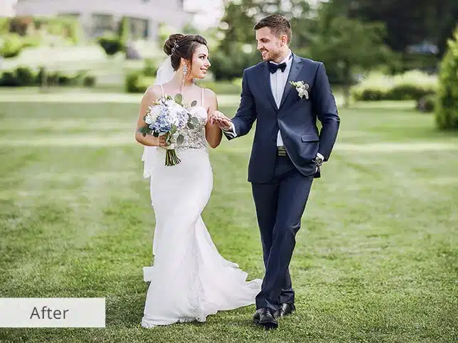 Send us your wedding photos, and we’ll choose the best shots, enhance colors, and eliminate distractions. Expect a pure white bride’s dress and vivid background tones, ensuring every photo looks stunning and professional.